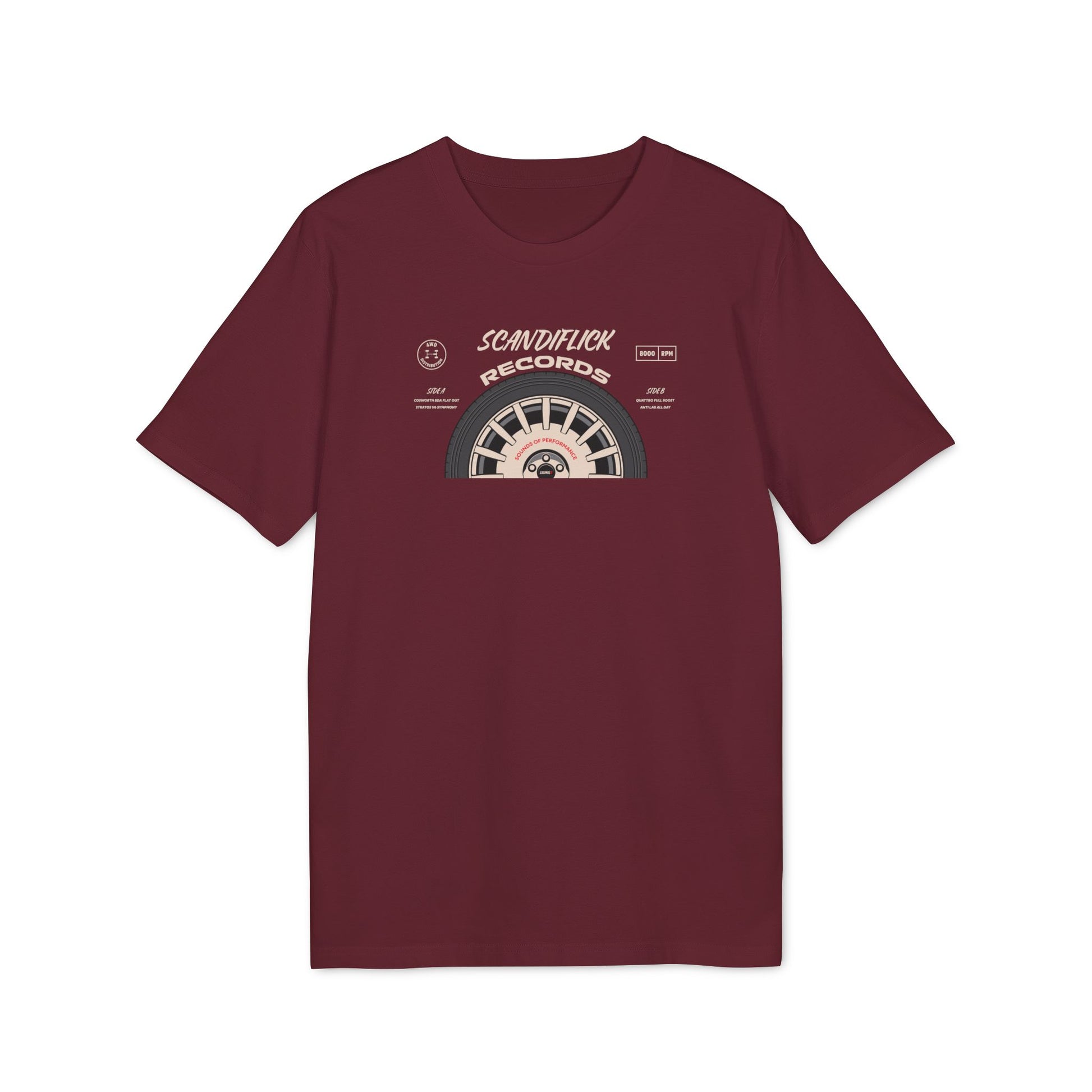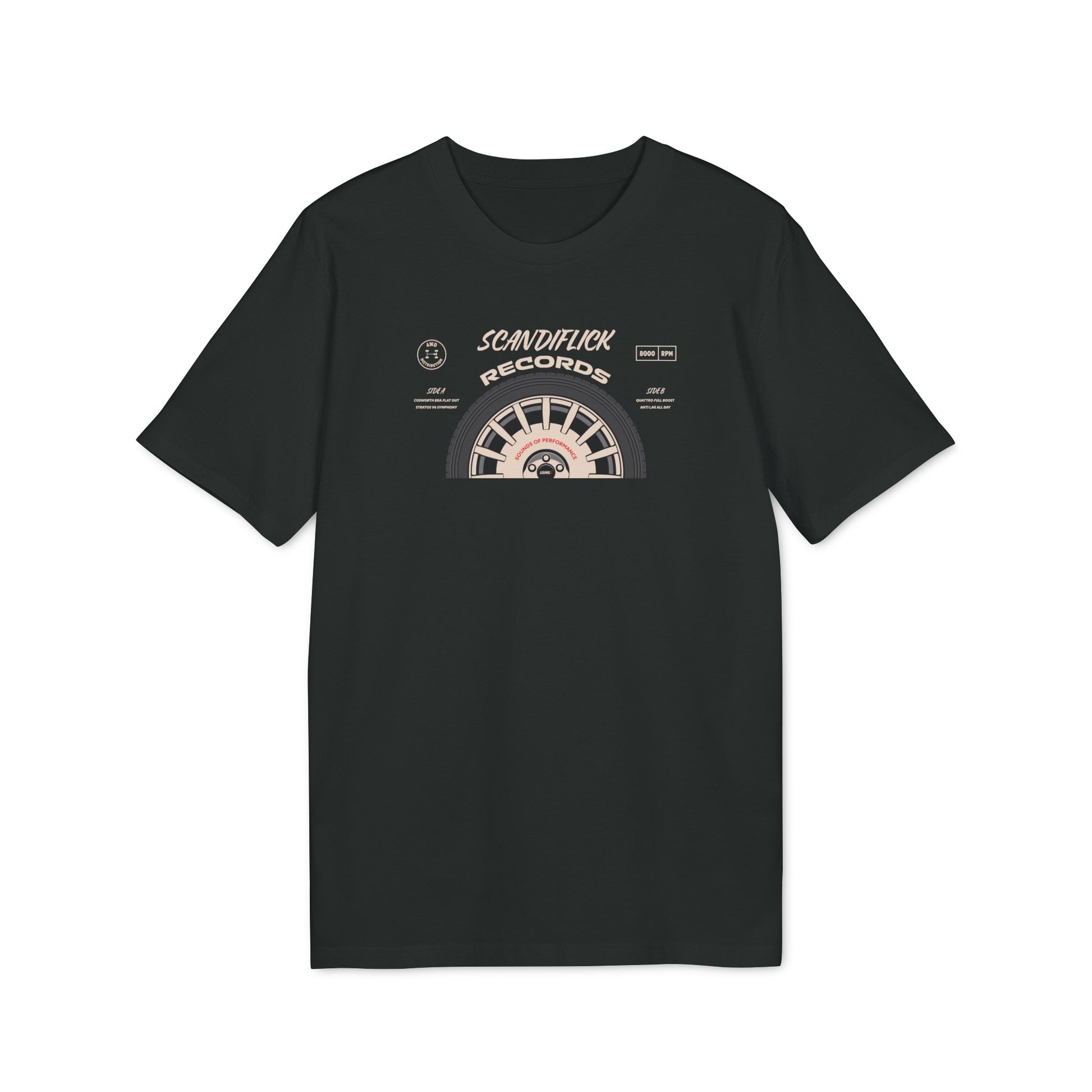 Okay, it's not actually a vinyl record (though wouldn’t that be epic?). This merch is a wearable tribute to the glory days of rallying, inspired by a fictional album cover from Scandi Flick Records. A must-have for true motorsport enthusiasts!
